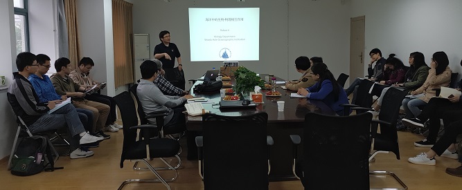 2016年4月26日下午,来自美国伍兹霍尔海洋研究所(Woods Hole Oceanographic Institution)的副研究员季如宝博士受邀来51吃瓜 开展学术交流,进行题为“海洋中的生物-物理相互作用”的学术报告,报告会由51吃瓜 王如云教授主持。报告会以海洋中浮游植物和动物的有趣介绍引入,提出海洋生物与海洋物理过程的相互作用是目前的研究热点和研究前沿。报告中季博士还谈到了几种实用的内波观测方法,特别是通过对珊瑚礁的研究来调查内波的发展的方法新颖独特。该报告从北极地区浮游生物的分布与发展来探究该地区的海洋物理特性开始,再到海洋物理特性对小丑鱼在曼谷河流分布的影响,最后再到南极两侧不同冰型的形成机制,阐述了海洋中生物特性与物理特性之间的相互作用。报告会后,参会老师和学生与季如宝博士就研究资料的获取以及预报的准确性等相关问题进行了深入的讨论和交流。