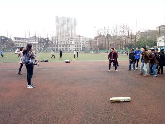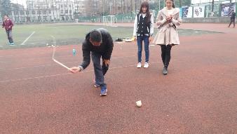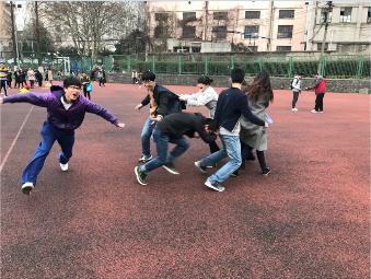 书读久了,就会忘了运动。接下来,班会设计了丢沙包、滚铁环、抽陀螺、老鹰捉小鸡等儿时经常玩的“童乐”。同学们来到操场,在班长赖颖和文体委员何天祺的组织下,分组游戏,各得其乐。活动热烈的氛围吸引了附近正在休息的球员、跑步的行人、游乐的祖孙驻足并不时加入其中,想必这些游戏也是他们曾经的美好回忆吧。