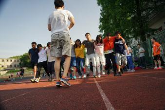 此次活动共有四支参赛队伍,分别是由曹海锦、王雪竹老师带领的两支教职工队,左常圣、田霏同学分别带领的研究生队和本科生队。活动分为跳大绳、十人十一足、接木棍和踢毽子四个环节,在各个比赛项目中,各支队伍各扬所长、争先恐后、奋力拼搏。尤其是在“跳大绳”和“十人十一足”的比赛中,老师和同学们都表现出了不俗的实力和顽强拼搏的精神。