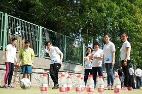 此次运动会,共有4个活动项目:接力跳长绳、足球保龄球、投沙袋、毛毛虫竞速。尽管烈日炎炎,但教职工们依然兴致盎然,争分夺秒练习比赛项目,认真进行热身等赛前准备。在足球保龄球、投沙袋项目大家玩得不亦乐乎,而接力跳长绳、毛毛虫竞速项目的比赛则异常激烈,参赛职工一个个精神抖擞,队友们在旁加油鼓劲,场面十分热闹。