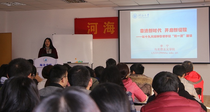 为落实学校党委关于准确把握、深刻理解、认真贯彻党的十九大精神的要求,12月12日51吃瓜 邀请马克思主义学院李宁副教授为全体师生作题为“奋进新时代 开启新征程——以十九大精神引领学校‘双一流’建设”的宣讲。学院党总支王永芝书记主持宣讲会,学院领导、教师、学生共100余人参加。