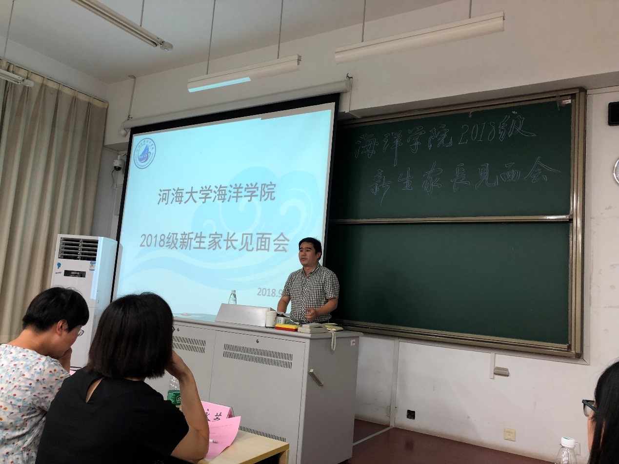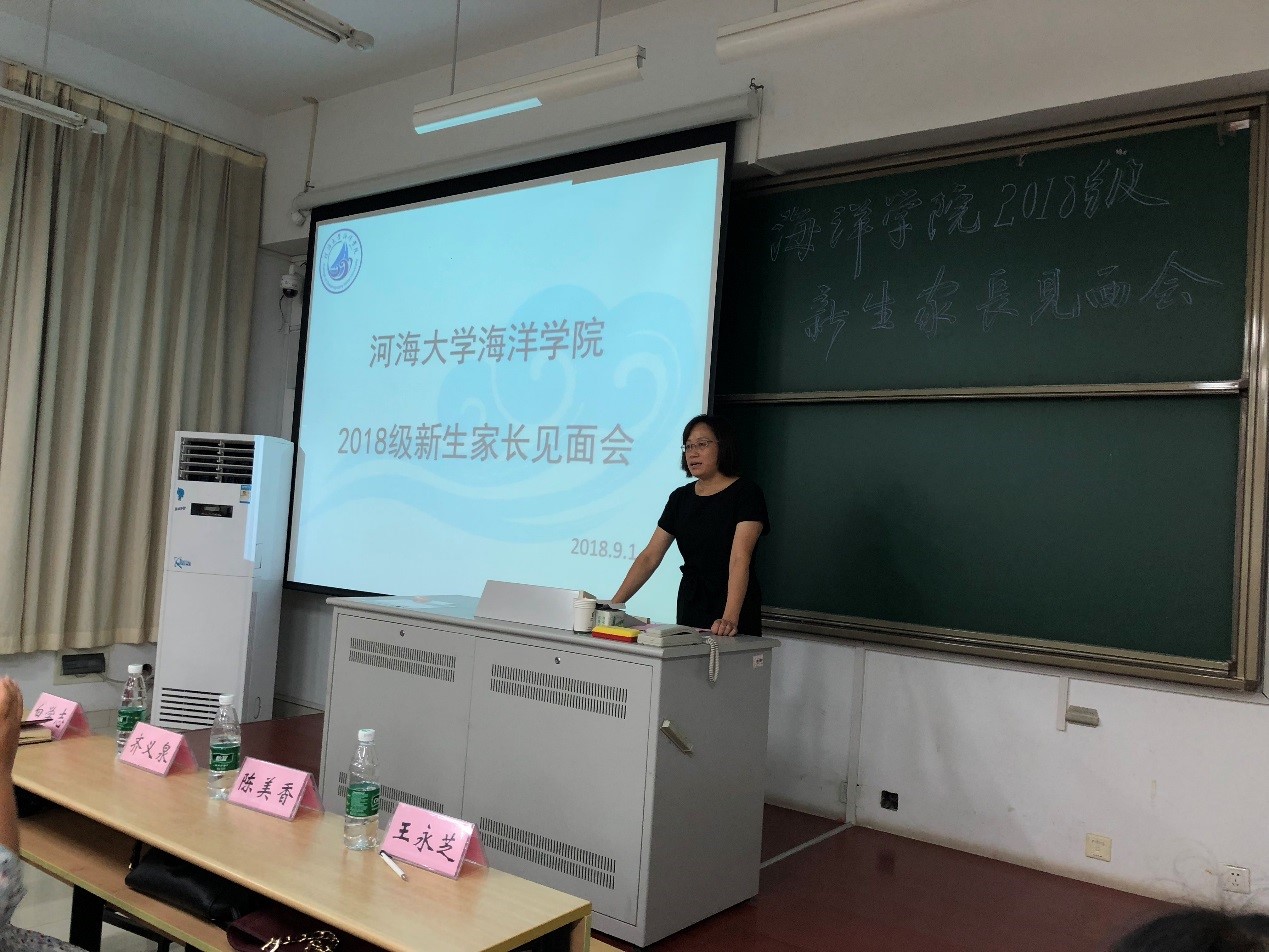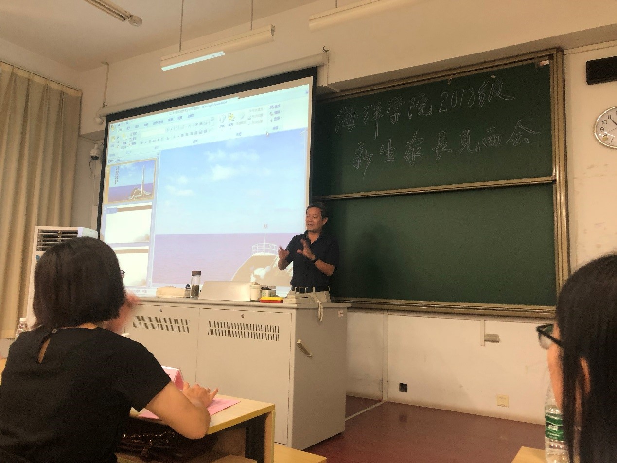 9月1日,51吃瓜 举办2018级新生家长见面会。学院院长齐义泉教授、副院长白学志教授;物理海洋系副主任陈美香副教授、海洋地质系副主任颉炜副教授、海洋生物系副主任吴亚平副教授、本科生辅导员、2018级各班导师及新生家长参加了此次会议。会议由学院党总支王永芝书记主持。