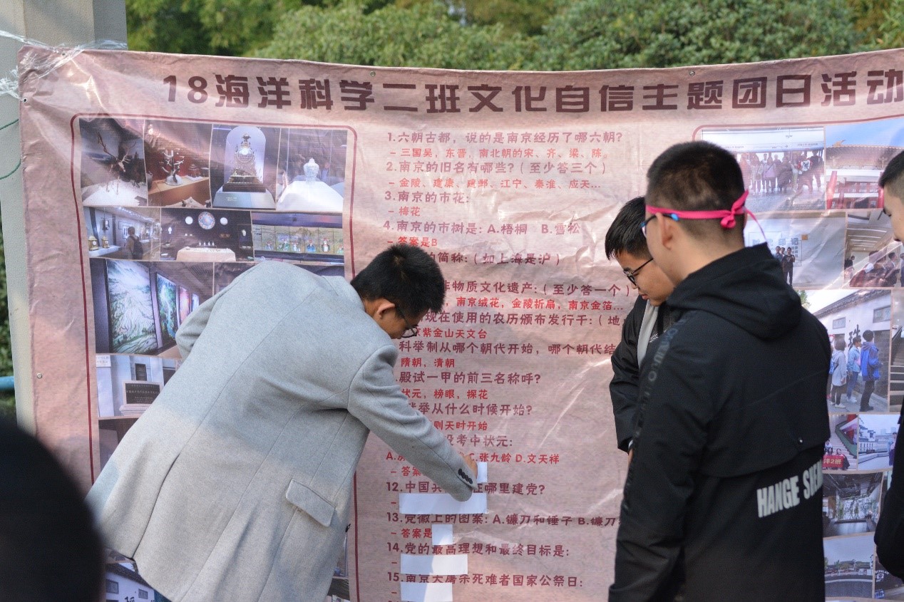 11月3日及11月4日,18级海洋科学2班分为三个小组进行了“我的大学100天”团日活动:参观南京博物院,中国科举博物馆,六朝博物馆以及中共代表团梅园新村纪念馆。本次团日活动藉由让同学们了解中国古代传统文化、听闻党的光荣历史,希望提高同学们的文化自信,树立民族自豪。