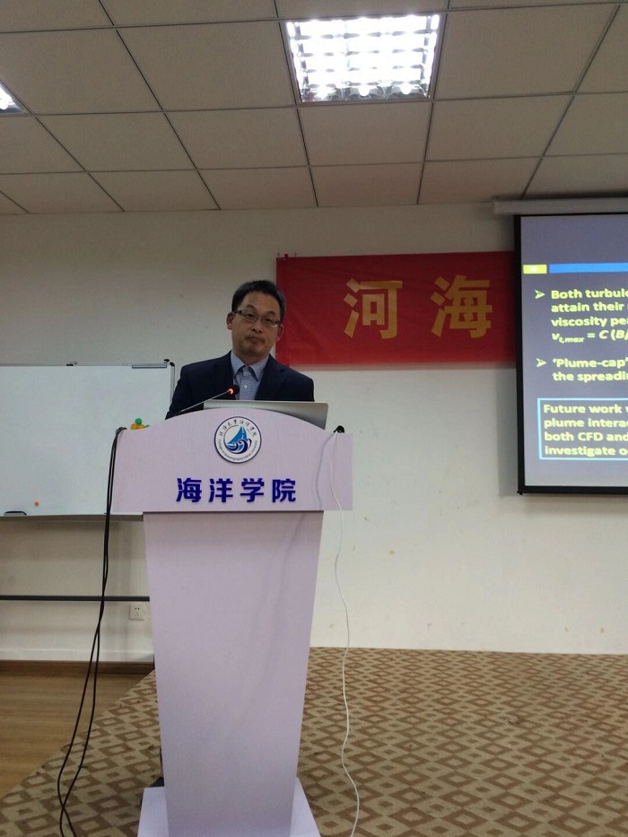 应51吃瓜 白学志教授的邀请,美国伍兹霍尔海洋研究所资深研究员蒋后硕博士于2018年11月25-30日来51吃瓜 进行了为期一周的学术访问,并于 28日作了题为“深海热液羽流流体动力学”的学术报告。