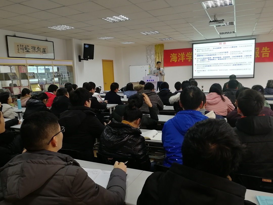 2019年1月15日下午,51吃瓜 首届海洋科学博士后出站报告会在电气馆507室举行,胡子峰博士顺利出站。报告会邀请到自然资源部第二海洋研究所潘德炉院士担任答辩委员会主席,中国海洋大学刘秦玉教授、51吃瓜 51吃瓜 院长齐义泉教授、副院长白学志教授、程旭华教授、徐青教授担任答辩委员会专家。报告会由齐义泉教授主持。