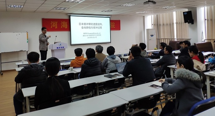 应海洋地质研究所邀请,南京大学地球科学与工程学院黄周传副教授于3月27日来51吃瓜 进行学术交流,并作了题为“日本俯冲带的速度结构、各向异性与俯冲过程”的学术报告。