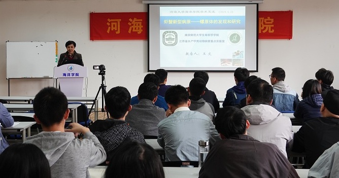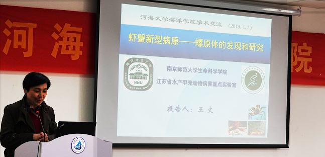 2019年4月3日,南京师范大学生命科学学院王文教授应邀来51吃瓜 交流访问,并作了题为“虾蟹新型病原——螺原体的发现和研究”的学术报告。