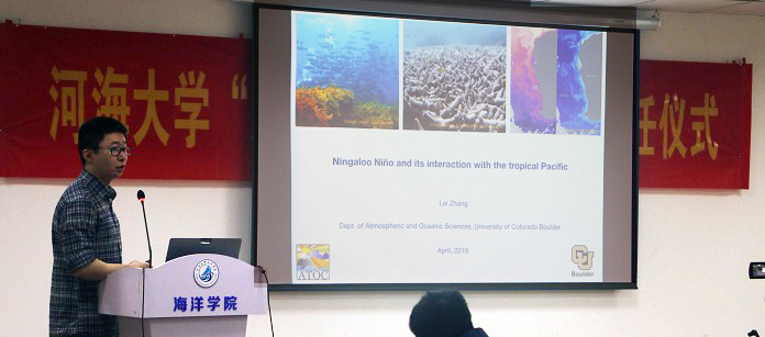 2019年4月23日上午,美国科罗拉多大学博士后张磊应邀来访51吃瓜 ,并作题为“Ningaloo Niño and its interaction with the tropical Pacific”的学术报告。