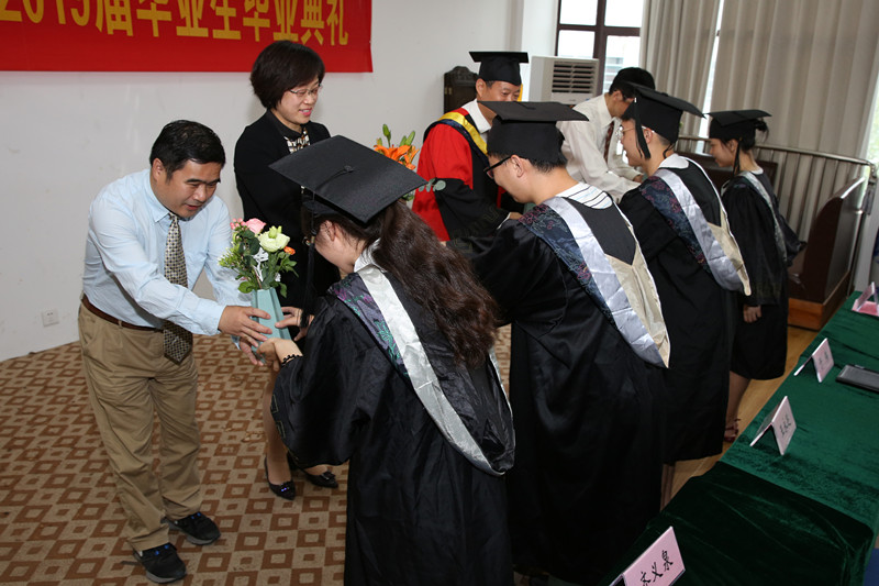 典礼上举行了毕业生授予学位仪式,到场领导老师为毕业生们拨穗并颁发学位证书。