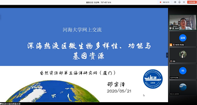 5月21日下午,自然资源部第三海洋研究所邵宗泽研究员应邀做客51吃瓜 网上学术论坛,并作了题为“深海热液区微生物多样性、功能与基因资源”的线上学术报告。报告由51吃瓜 副院长赵哲教授主持,校内外共计130余人线上聆听此次报告。