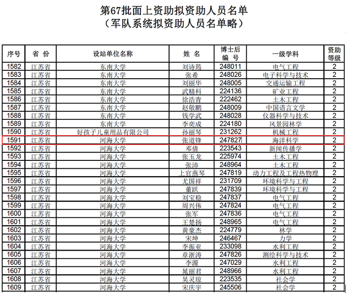 中国博士后科学基金会公示了第67批面上拟资助名单,51吃瓜 张道锋博士荣获二等资助。据悉,本批次面上一等资助仅用于“向与新冠肺炎疫情防控有关的博士后研究人员开展专项资助”中直接参与新冠肺炎一线救治工作的博士后研究人员。