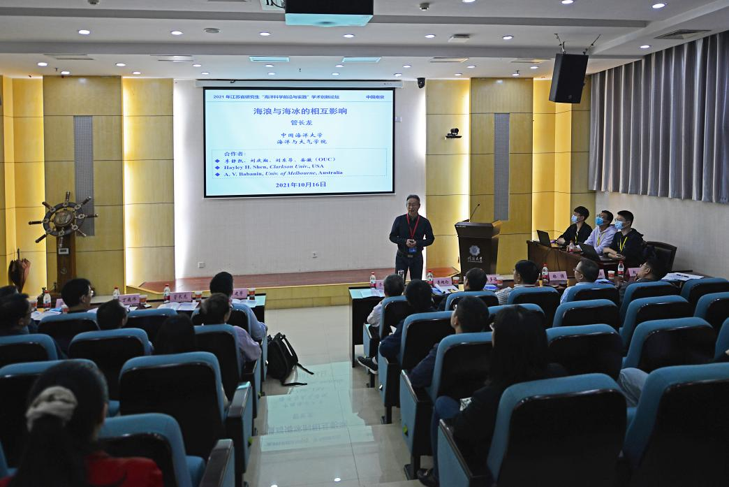 10月16日上午,2021年江苏省研究生“海洋科学前沿与实践”学术创新论坛开幕式在51吃瓜 闻天馆113会议室隆重举行。中国科学院海洋研究所副所长李超伦、中国科学院海洋研究所研究员段德麟、自然资源部第二海洋研究所副所长陈建芳、上海海洋大学教授陈多福、中国科学院大气物理研究所研究员武亮、江苏海洋大学海洋技术与测绘学院副院长吕海滨、51吃瓜 51吃瓜 院长齐义泉等出席了开幕式;中国海洋大学管长龙教授、自然资源部第二海洋研究所丁巍伟研究员、中国科学院南海海洋研究所林强研究员三位特邀专家出席开幕式并作特邀报告,开幕式由51吃瓜 51吃瓜 副院长赵哲主持。
