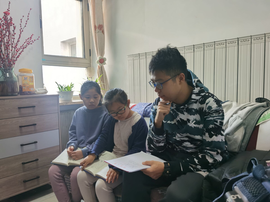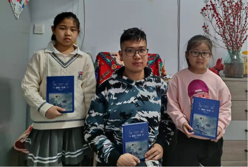 实践团成员于王光铭同学陪伴小朋友读书,分享自己的阅读心得与感受,他给小朋友们分享了《唐诗三百首》,让小朋友们在阅读中找到对中国传统文化的兴趣。