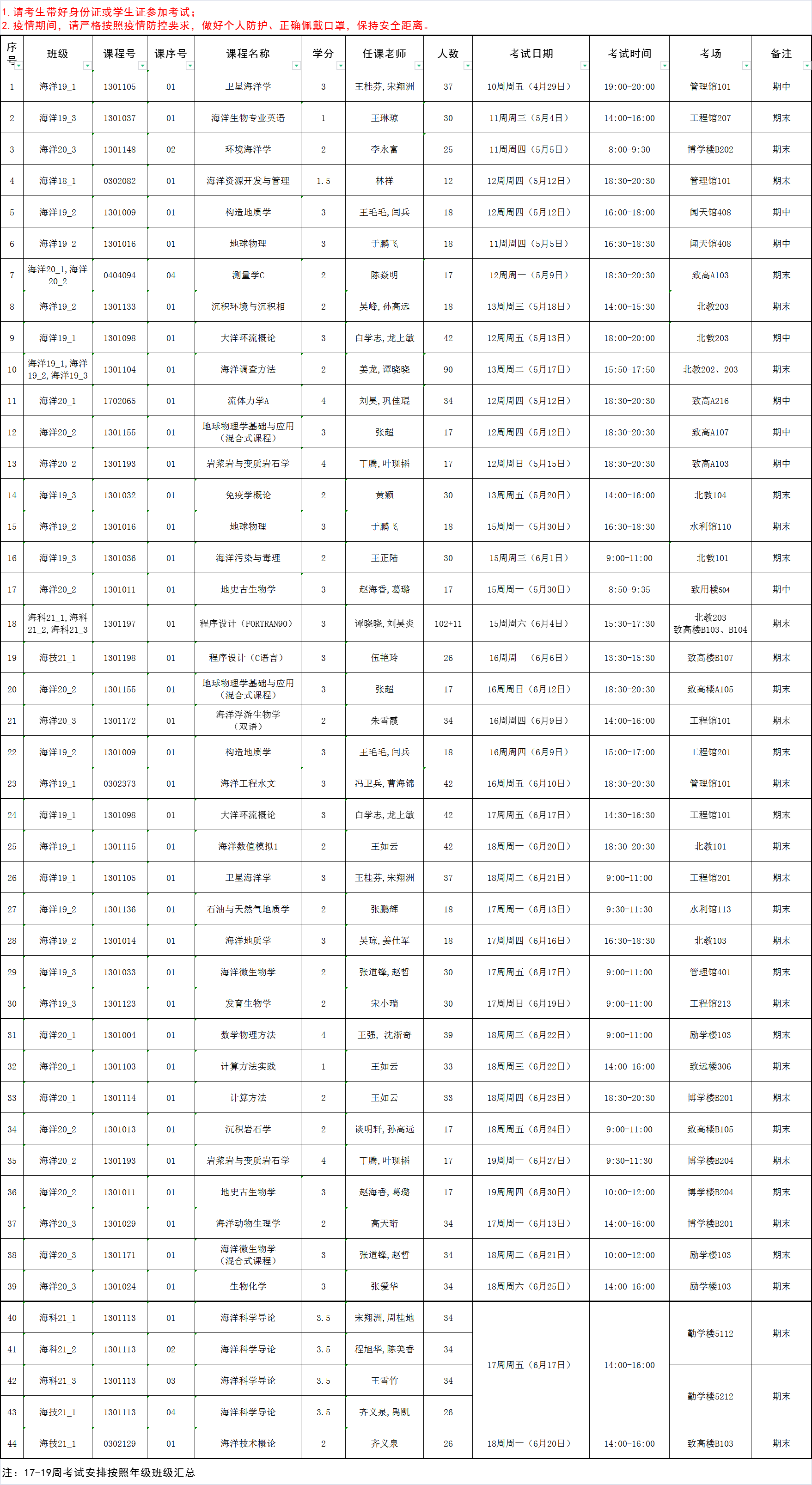 2021-2022-2学期海洋院专业课考试安排