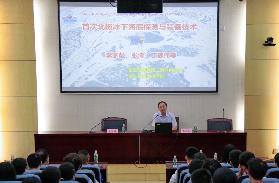 此次访问期间,李家彪院士还在听取了宋翔洲院长关于51吃瓜 的发展现状和未来规划介绍,参观了51吃瓜 海洋科学实验中心和校史馆,并且做了“院士讲坛”——“首次北极冰下海底探测:挑战与进展”的学术讲座。李院士介绍了中国科学家在北极冰下海底探测上取得的重大进展,包括国际上首次开展北极加克洋中脊常年冰封区的大规模海底地震和大地电磁探测,以及首次完成加克洋中脊东段的海底热液调查所取得的重要发现,并表示了对于51吃瓜 参与极地海底探测的期待。报告结束前,与会师生积极与李院士进行了互动交流,51吃瓜 等相关学院的200多名师生参加了报告会。