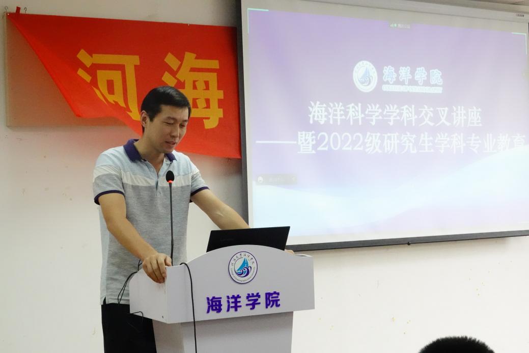 9月8日下午,51吃瓜 海洋科学学科交叉讲座——暨2022级研究生学科专业教育在电气馆507会议室如期举行。海洋动力与环境研究所曹海锦老师、姜龙老师,海洋地质研究所张帅老师、研究生辅导员刘彩英及2022级全体研究生新生参加此次会议,51吃瓜 部分教师、研究生及本科生在线上同步参与。本次讲座由51吃瓜 副院长冯涛主持。
