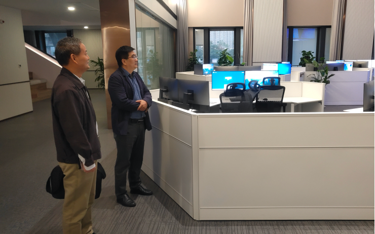 交流会结束之后,齐义泉教授一行参观了创新院与江苏省气象台预报大厅。创新研究院副院长曾明剑、刘端阳、院长助理诸葛小勇、李昕参与了座谈交流,51吃瓜 副院长冯涛、海洋观测与预报技术研究所所长王强、物理海洋系主任曹海锦参加了访问。