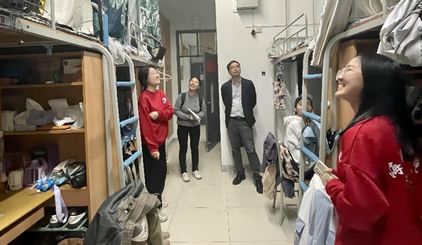 近日,为深入落实“一线规则”,学院党政领导班子深入两校区全体本科生宿舍楼,进一步宣传党的二十大精神,掌握学生生活学习状态与思想动态,帮助同学们在寒冬守好思想防线和安全防线。