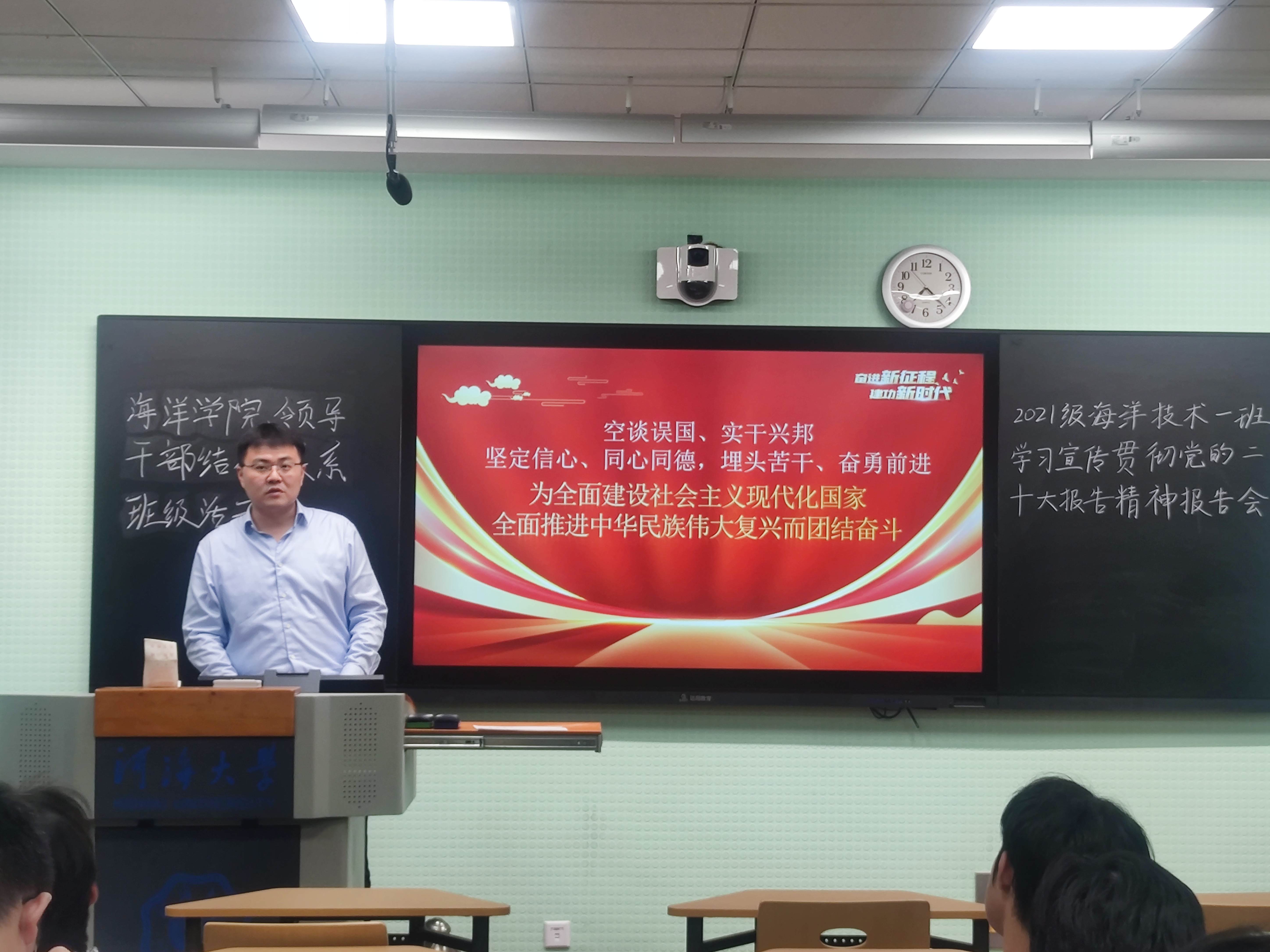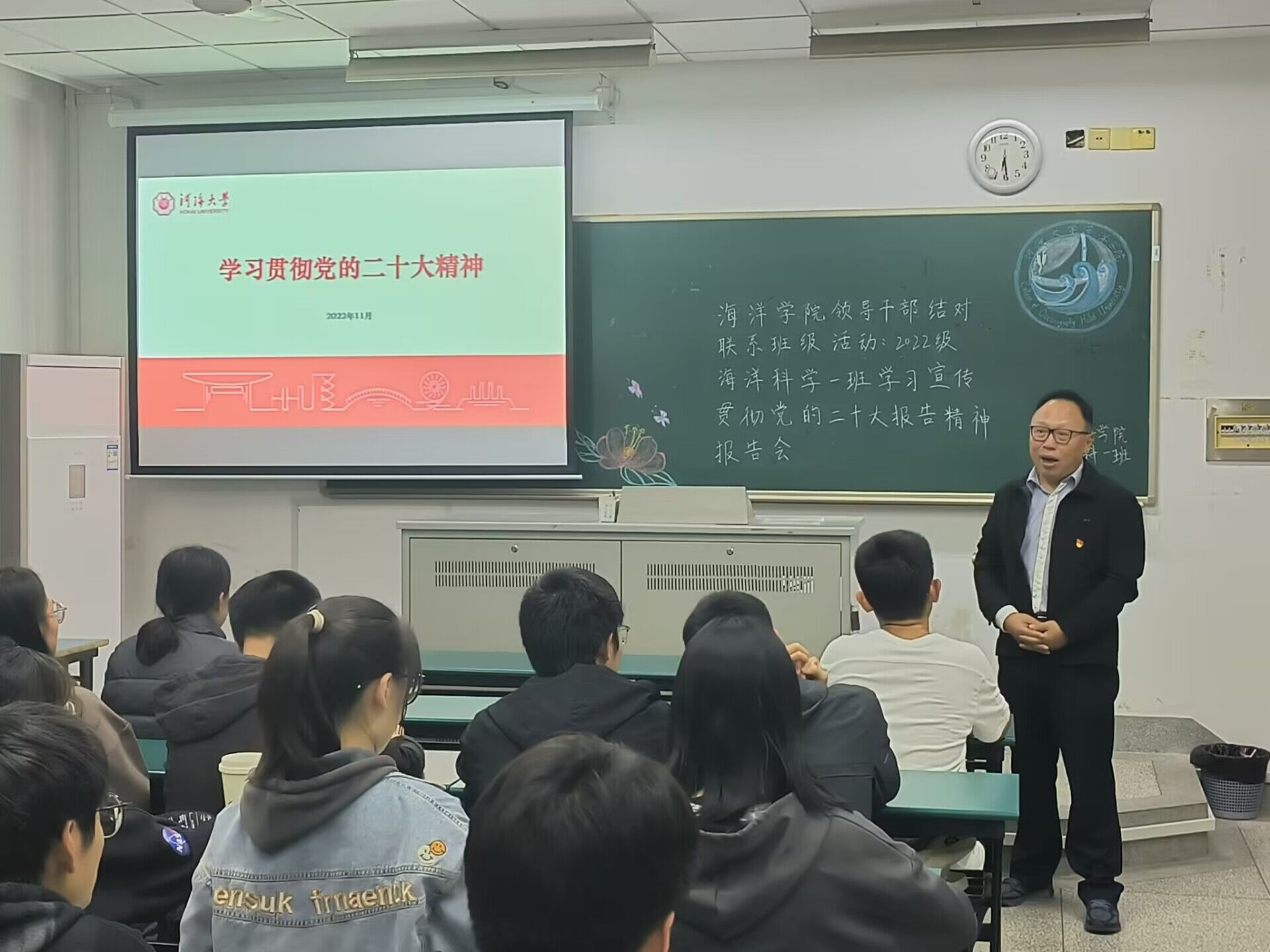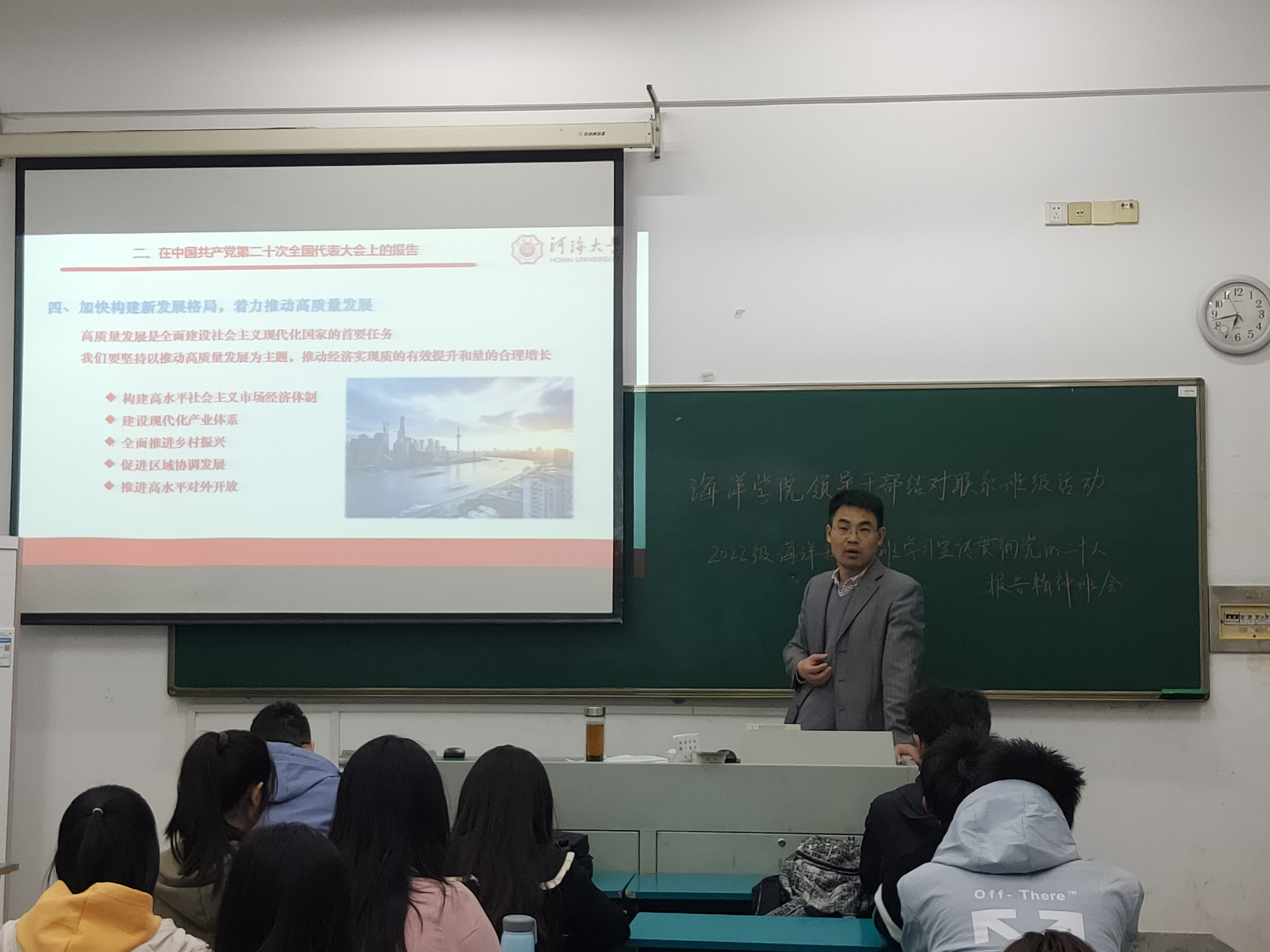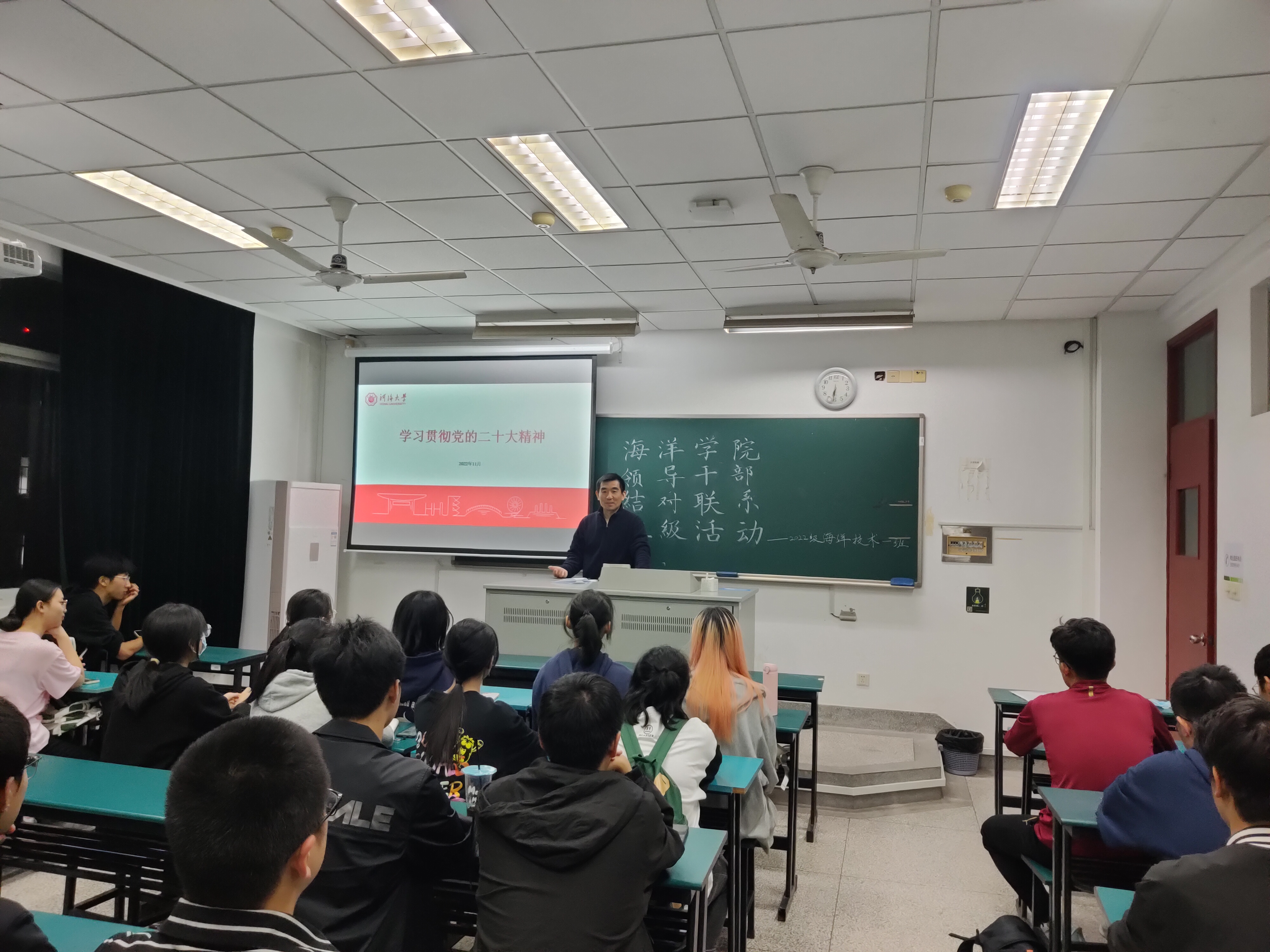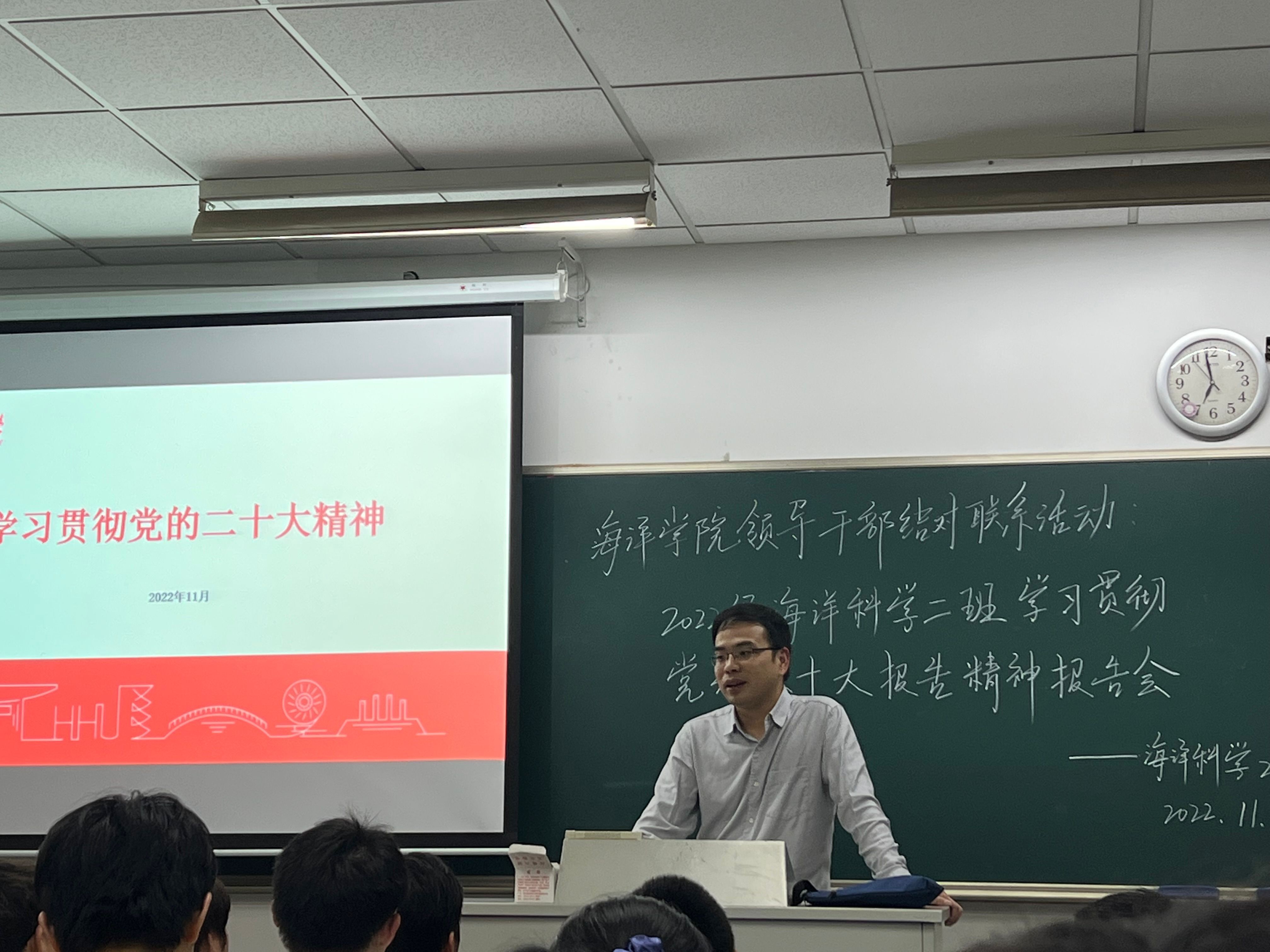 其他院领导也结合学校、学院发展实际,从发展海洋经济、保护海洋生态环境,提升人才自主培养质量、青年的历史使命和时代责任等方面与同学们交流学习体会。