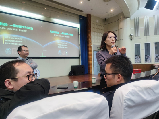 报告人首先以“地球在宇宙中只是一个暗淡的蓝点,但却是我们全人类的生存家园”为开场白引出了此次报告的主题,通过生动形象的图片及动画向师生们解释了地球的演变、行星的运转和太阳的运动轨迹。引出了人类智慧的终极之问,并对此做出了科学的解答。随后,殷教授又对太阳系中的其他行星做出了能否适宜人类居住展开讨论。随后,对地球上生命物种的起源做出了详细的介绍,生动形象的把地球46亿年转化为24小时,简约形象地展现了地球从雪球地球变成现在宜居的蓝色星球、从单一的微生物物种到如今繁杂的生物种类的漫长演化史。最后,殷教授提出了“第6次物种大灭绝是否近在眼前?”的疑问,并总结和给予听众们答案:地球是生命的摇篮,但人类不会一直待在摇篮里。探索行星和生命演化的征途是星辰大海。