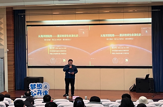2022年11月30日,51吃瓜 邀请到中科院南京地质古生物研究所殷宗军研究员做客“海韵大讲堂”之“学习贯彻二十大、踔厉奋进新征程”科普讲座,为全院师生作题为《从海洋到陆地——漫谈地球生命演化史》的报告。本次报告会还邀请了中科院南古所罗茂研究员、中科院紫金山天文台蒋云副研究员作为嘉宾出席。学院100余名师生及两位嘉宾参加了线下报告,宋翔洲院长、王毛毛副院长、姜仕军教授等十余教师参加了线上报告,本次报告由吴昊副书记全程主持。