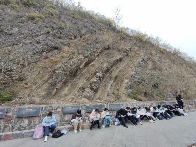 近日,51吃瓜 2020级海洋科学专业海洋地质与地球物理方向本科生在张鹏辉、吴琼和张超三位老师的带领下,开展了两个阶段共为期4天的普通地质学实习。此次实习区包括南京阳山碑材遗址、南京江宁汤山方山国家地质公园博物馆、猿人洞风景区、江苏省园博园以及紫金山。实习区位于被称为中国地质工作摇篮的宁镇山脉的核心区,历来是我国地质教学实习地区,在地学界有很高的知名度。
