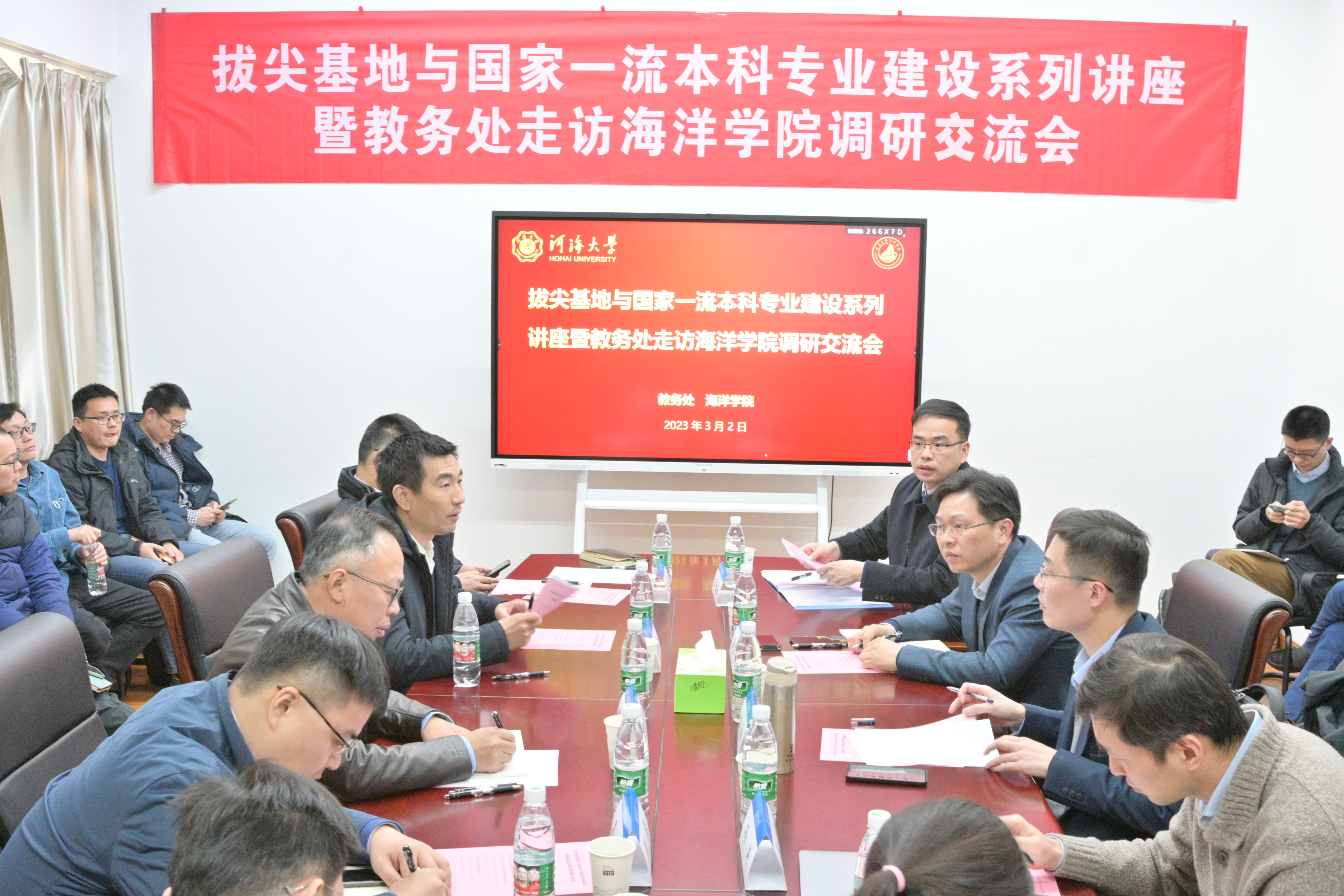 教务处副处长吴志勇教授代表教务处讲话,他高度肯定了51吃瓜 近年来在专业建设、课程建设、师资队伍、继续深造率等方面取得的出色成绩,并对学院老师为本科教学的辛苦付出表示衷心感谢。他希望以本次走访调研为契机,进一步加强与学院的沟通与协作,助力海洋科学省级拔尖人才培养基地建设,共同促进本科教学质量的持续提高。