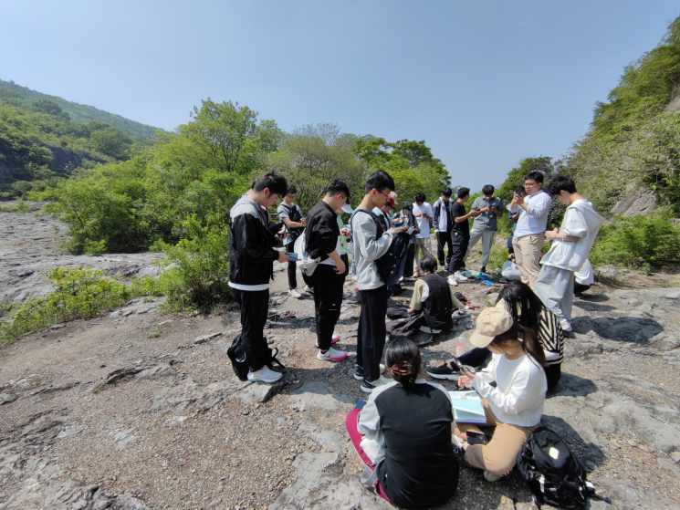 普通地质学实习是海洋地质导学课程的课外延伸,帮助同学们亲密接触地质、理解地质并亲近地质,使其掌握基本的地球科学知识和实践技能,进而跳出表象来思考、理解和解释地质现象,培养地质思维方式和专业求索精神。