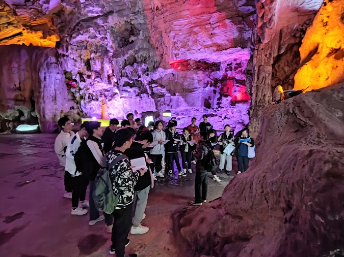 4月24日早晨,同学们抵达实习第一站—无锡宜兴善卷洞实习区,漫步善卷洞这一著名的石灰岩溶洞,宛如进入一座地下宫殿,在老师们的指导下了解溶洞的形成,认识三叠系青龙组灰岩的样貌与特征,并进一步学习石笋定年方法。在善卷洞中,同学们加深了对喀斯特地貌的成因认识,并观察到石笋的奇美百态,对岩溶地质与水文地质有了深入的了解。