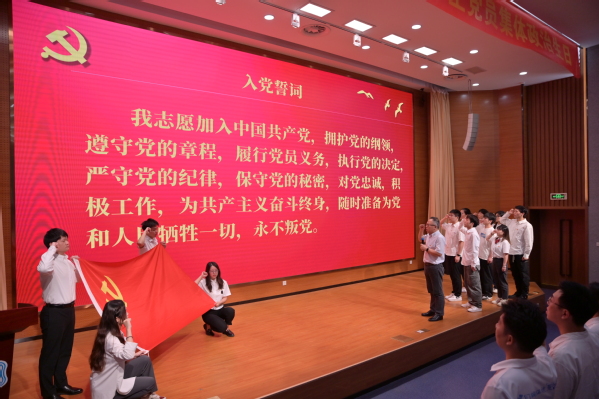 为鼓励新党员赓续党的光荣传统,会上举行为新党员佩戴党徽仪式,为本学年新发展党员佩戴党徽,激励新党员亮身份、做表率,鞭策新党员坚守初心、勇担使命,埋头苦干、砥砺前行。