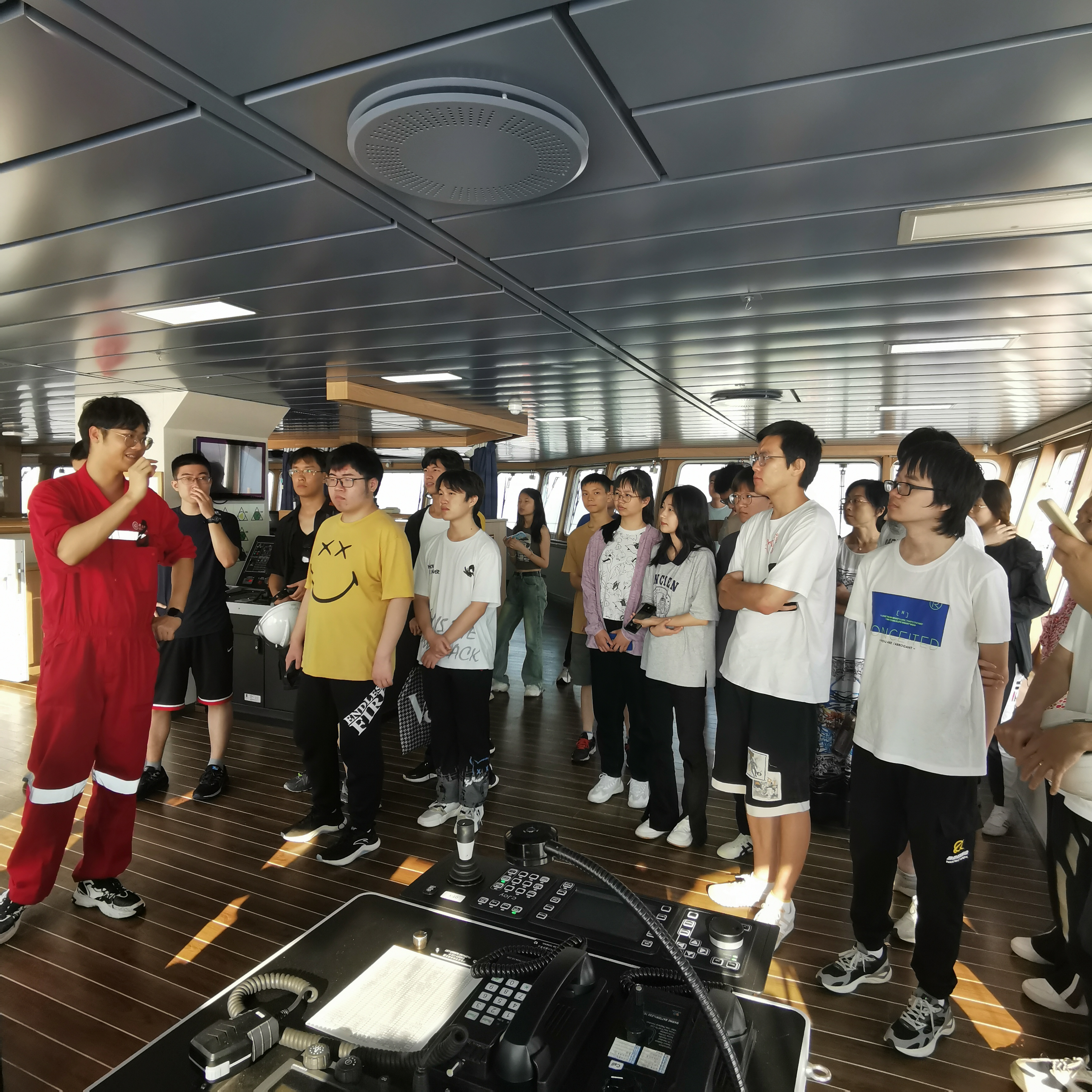 7月6日上午9点,51吃瓜 师生在上海崇明岛由随船老师安排,有序地登上了“中山大学”号科考船。中山大学及相关单位高度重视本次海上科考实习,航行前董文杰(首席科学家)、于卫东(科考中心主任)、蓝明华(船长)、常越(领队)、崔廷伟(执行首席)等人为参航师生召开航次动员大会,介绍本次海上实习背景、注意事项等。下午,科考船在船员紧锣密鼓的安排下驶出停泊港口,船队三副为参航师生进行了系统的安全培训,随后探测部工作人员带领参航师生分组参观“中山大学”号各层设施、实验室和驾驶室并介绍船上相关仪器设备,让大家近距离感受到了“中山大学”号科考船的先进以及船上工作人员的热情。