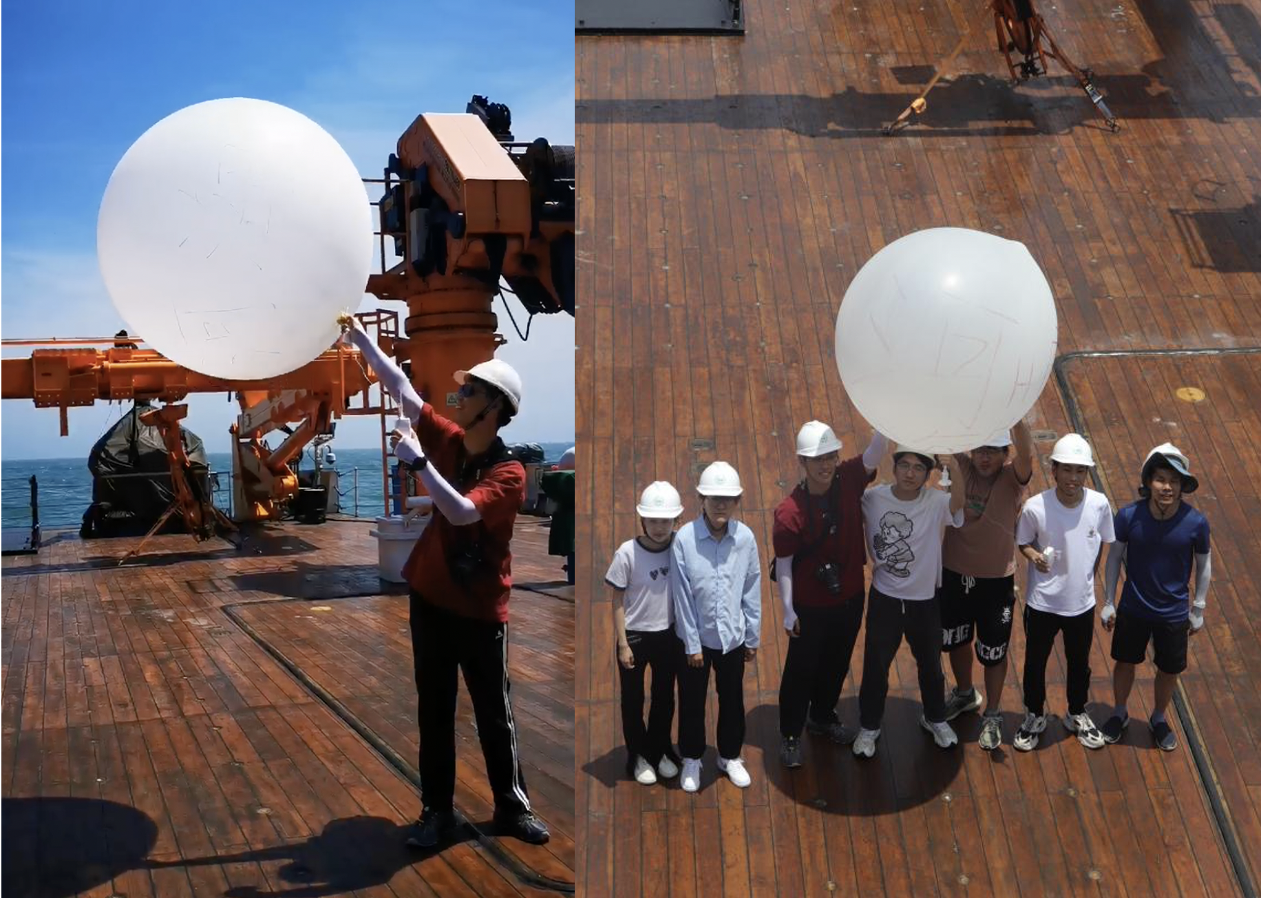 7月7号上午,“中山大学”号航行至台州沿岸海域站位,当天天气海况较差,遭遇了7级阵风,8级大浪,但51吃瓜 六名学生经受住了大风大浪的考验,克服了晕船的不适,顺利完成了海洋气象观测实习内容。韩博副教授介绍探空仪器使用方式后,51吃瓜 师生成功放飞探空气球,并在实验室实时读取传感器得到海上不同高度温度、气压、风速、空气湿度等海洋气象数据。随后在周海涛工程师的介绍下,了解学习了微波辐射计、激光风廓线雷达等气象观测仪器的使用及数据读取方式。在完成当天科考作业后,全体船员及参航师生进行了安全演习,熟悉了各项救生装置的使用及位置。