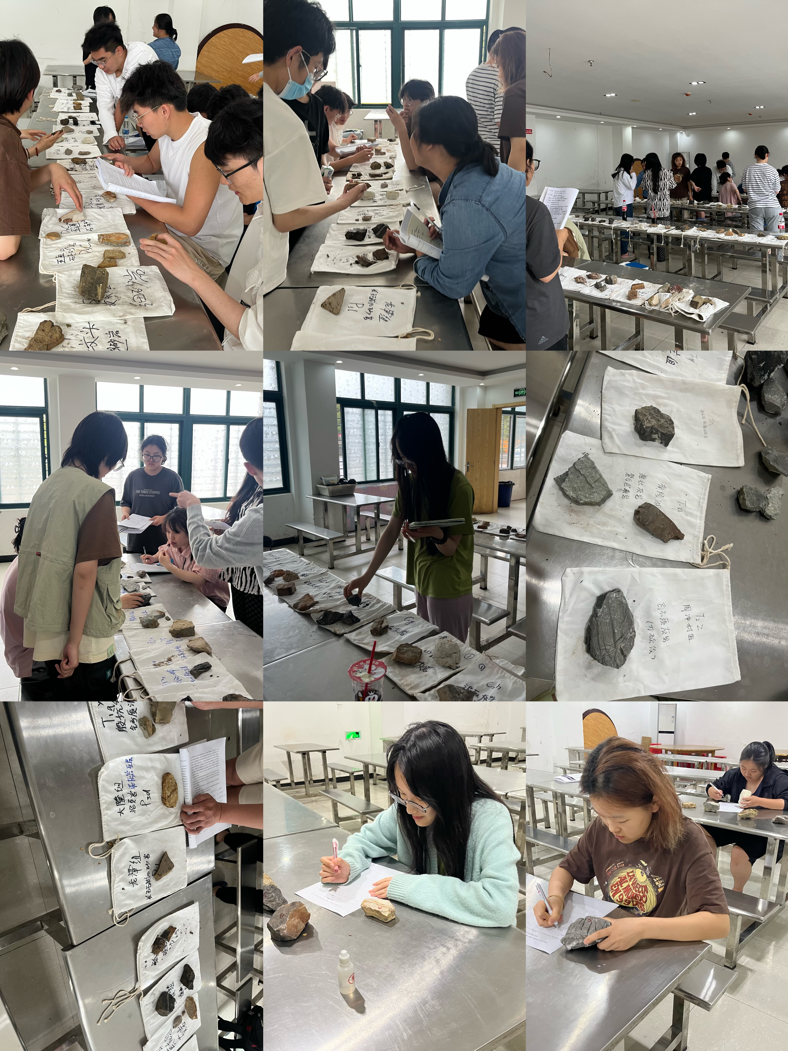 为了巩固踏勘成果,带队老师对学生们的踏勘小结进行了评阅,同时在实习基地对踏勘阶段采集的岩石标本进行了岩性鉴定及所属地层鉴别的考试(图6)。