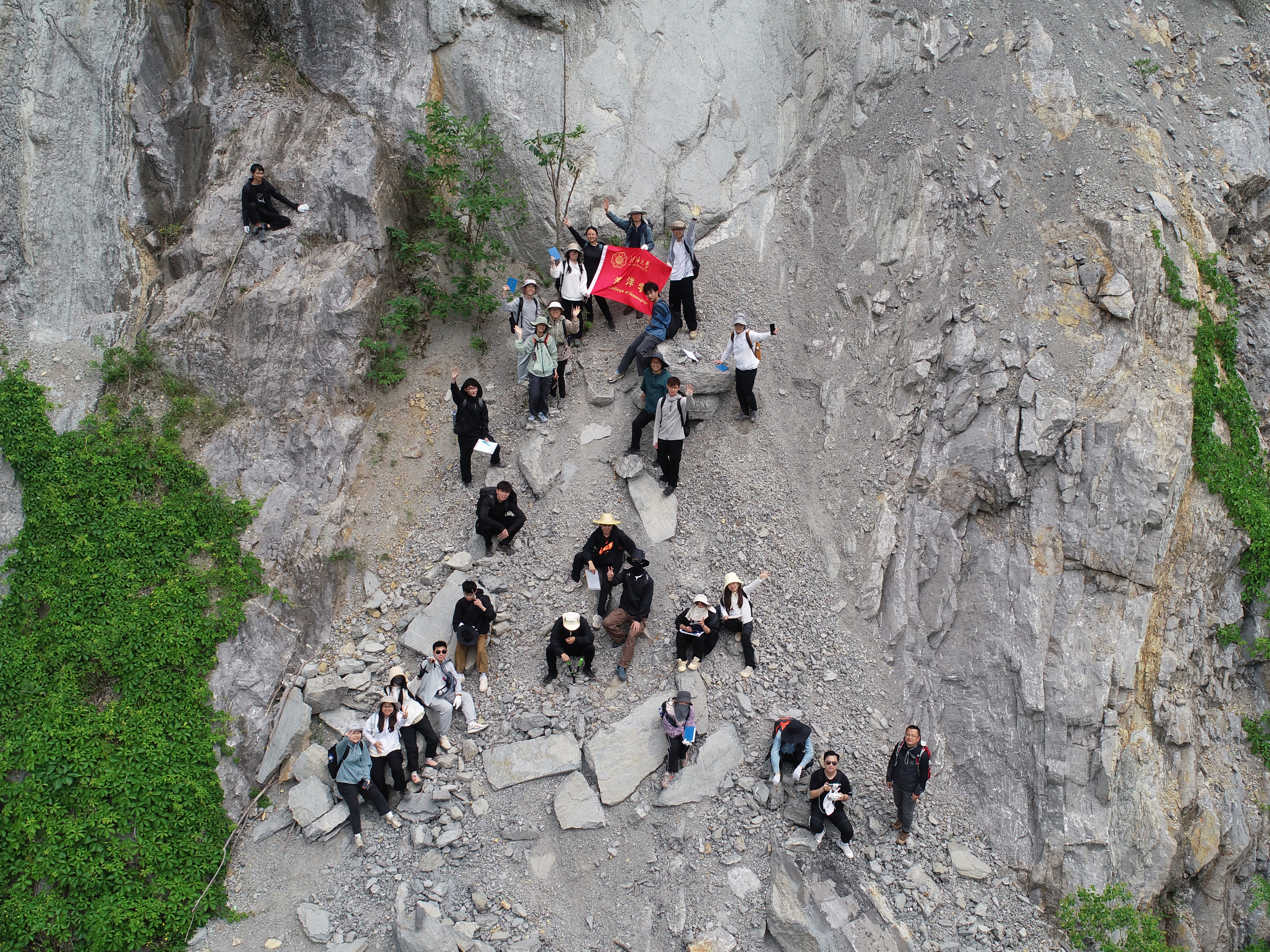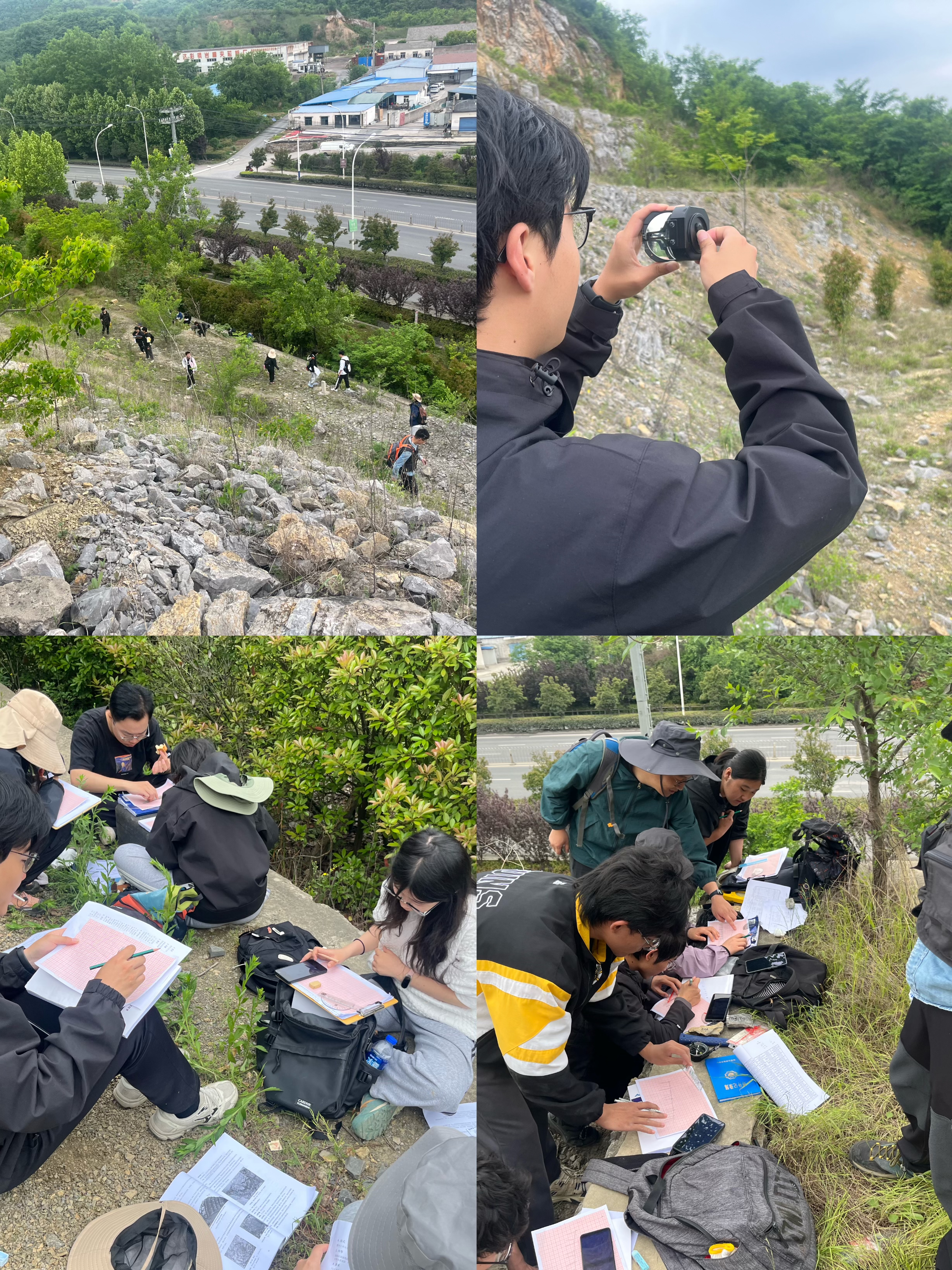 在这五天里,我们徒步穿越了马家山、平顶山、柴火山、麒麟山、长腰山、凤凰山等多座山峰。同学们穿行在山间,跨越森林与峡谷,毫不畏惧地开辟一条又一条的山路,逐一探寻着地层的分界线。开路者翻越树丛、探索前行;测量员攀登山岩、测量产状;记录员详尽描述、整理数据,为了最终的地质填图提供前期数据基础。