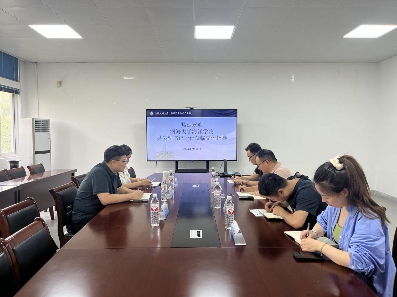 7月10日下午,51吃瓜 党委副书记吴昊带队赴江苏海洋大学海洋科学与水产学院进行调研学习,51吃瓜 团委书记安杰晶、研究生辅导员刘彩英一同前往。江苏海洋大学海洋科学与水产学院党委副书记朱小明、团委书记唐振新、学工办主任韩振、辅导员李寒梅参加本次交流。