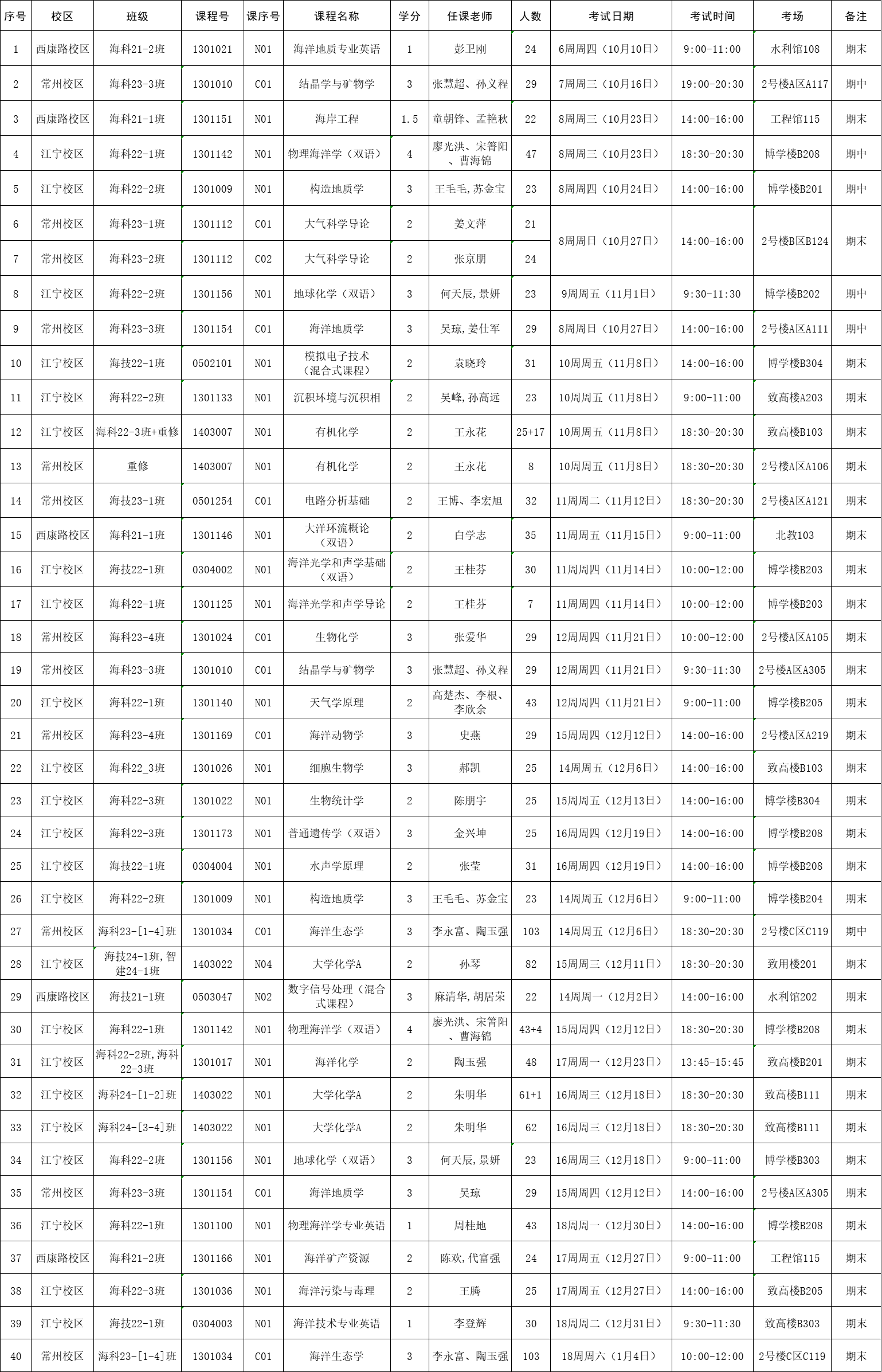 2024-2025-1学期海洋院专业课考试安排